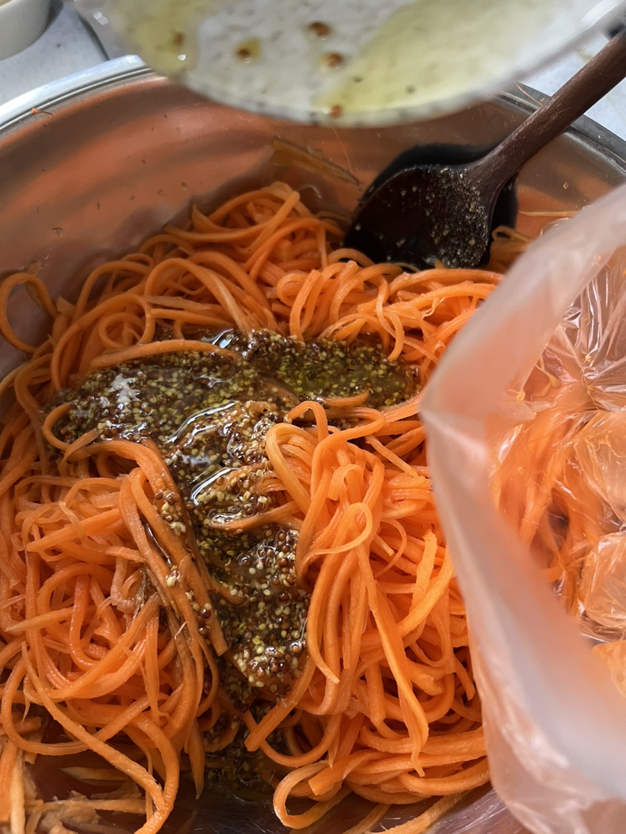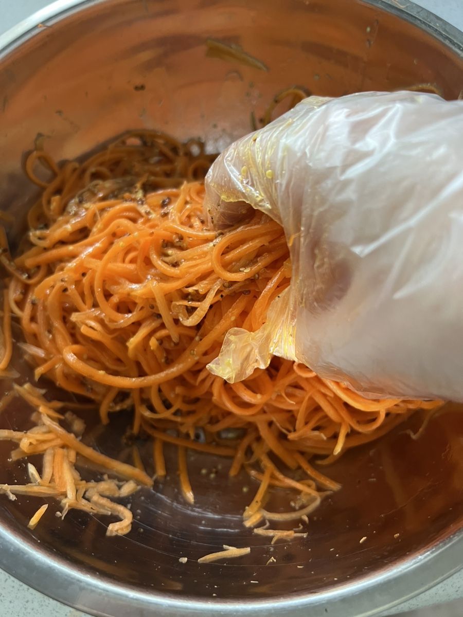 여러분... 당근을 절이고 나면 꼭 물기를 짜주어야 합니다!!