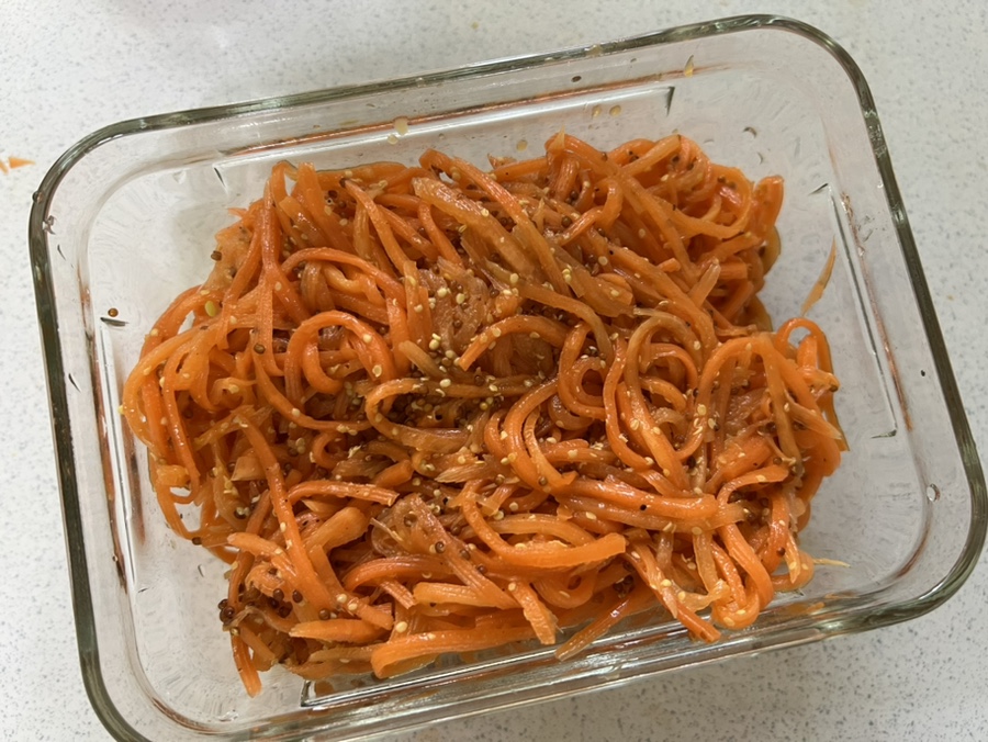 잘 버무려진 당근라페는 밀폐용기에 담아서 2~3시간 냉장고에 넣고 숙성해서 드시면 됩니다!!