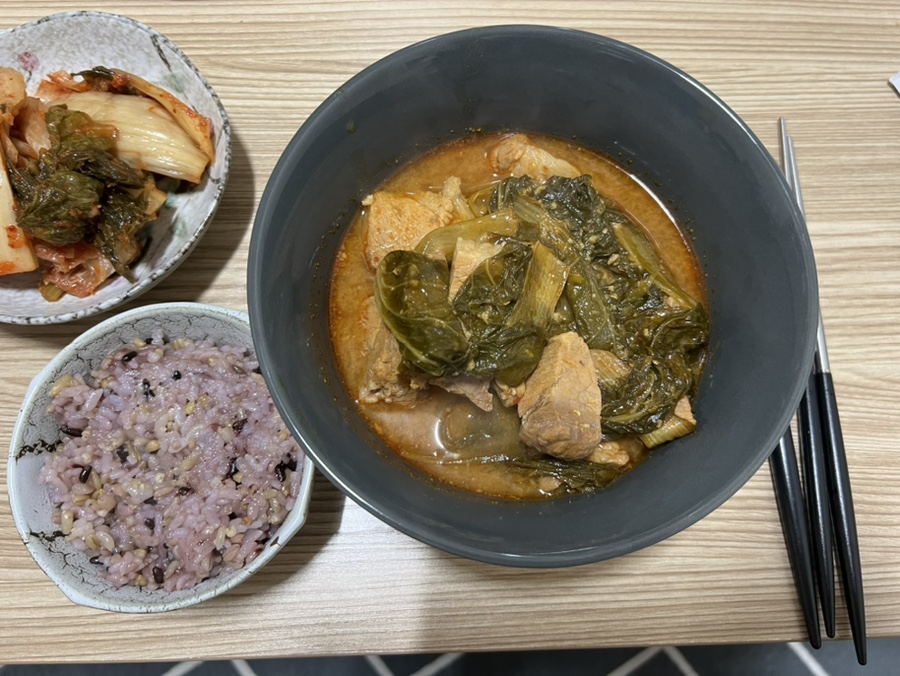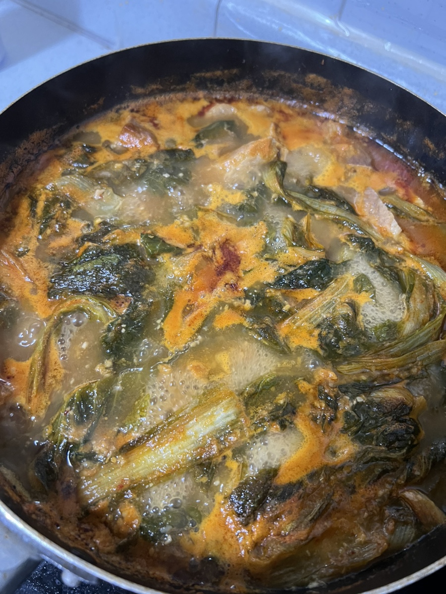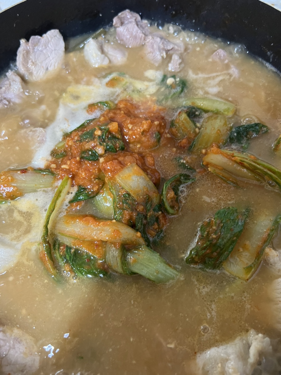 고기가 1kg라 얼갈이 배추도 많이 넣었다고 생각했는데 부족해서 다음날 한번 더 끓여 먹을때 추가로 넣어서 먹었었어요!!