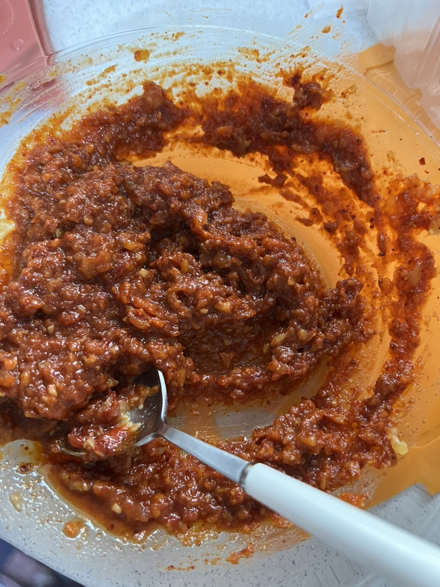 양념장은 된장 3큰술, 고추장 2큰술, 고춧가루 2큰술, 다진마늘 2큰술을 넣고 섞어주었어요!!