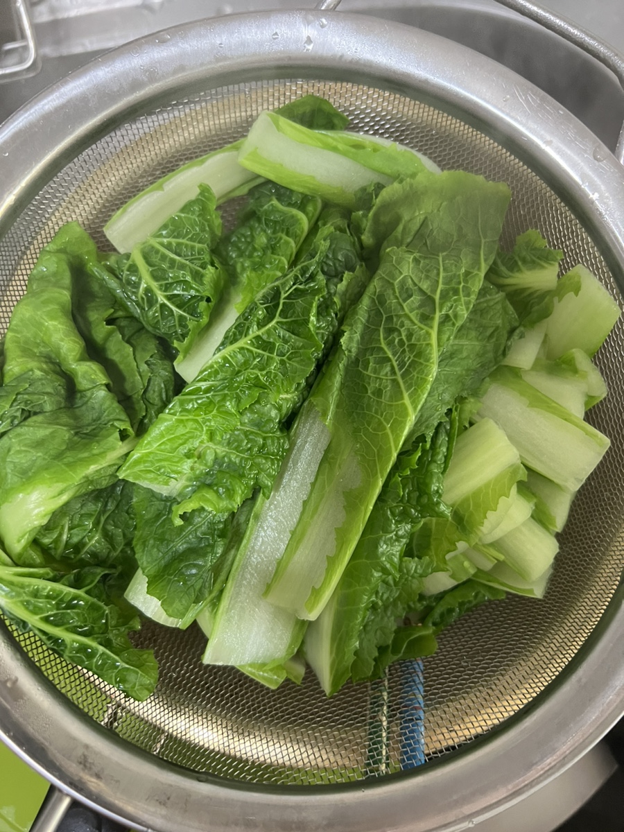 고기가 끓는 동안 얼갈이 배추를 세척해주었습니당!!