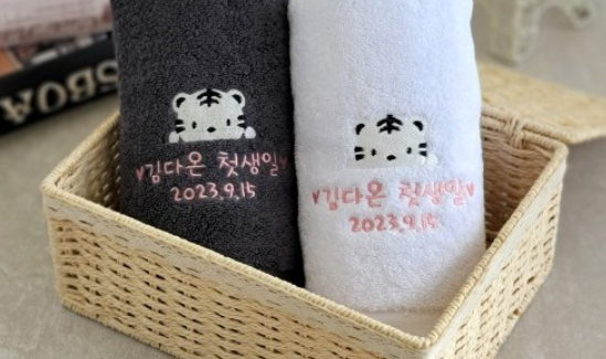 하나는 럭셔리돌에서 도마! 이건 한 가정당 1개씩 드릴 선물이고 다른 하나는 수건입니다! 수건은 개인당 선물이에요!