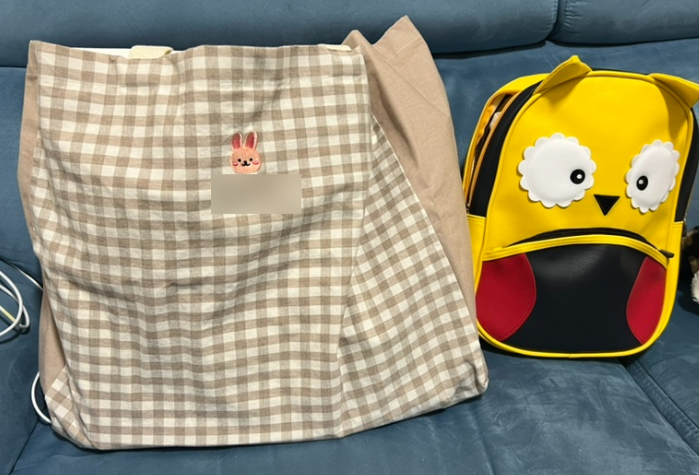 선물받은 낮잠이불 가방에 준비물을 챙겨서 보냈어요!