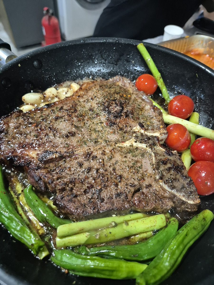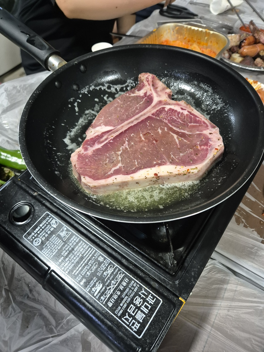 펜션에서 먹는 티본스테이크!