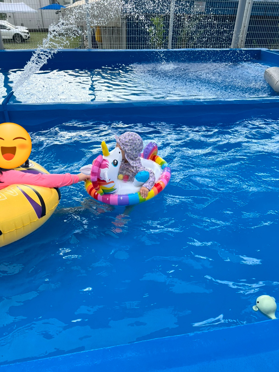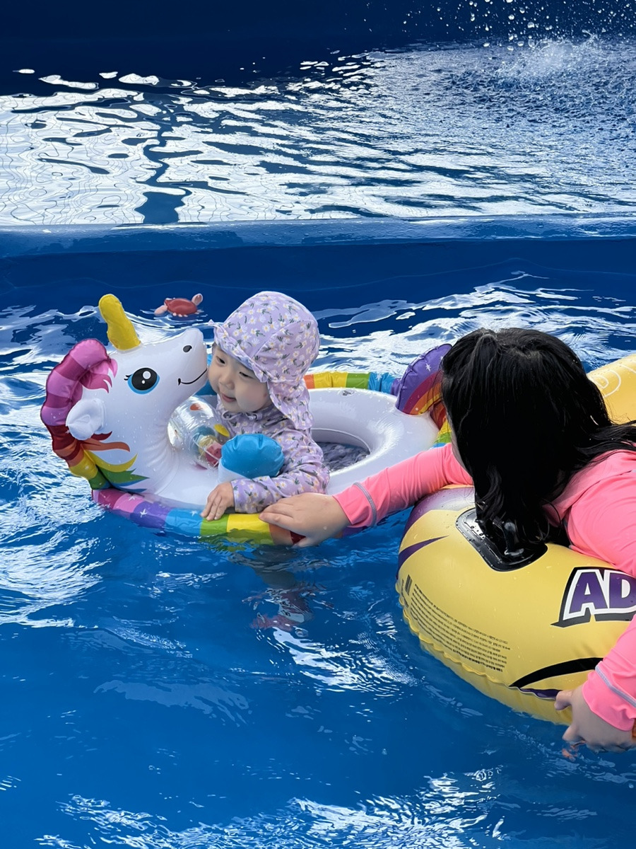펜션에 작은 풀장이 설치가 되어있어서 조카들과 쑥쑥이랑 같이 물놀이를 했어요!