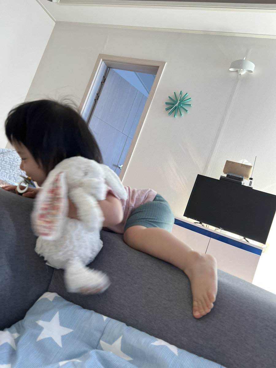 열심히 물놀이한 쑥쑥이를 재우고 홈캠 켜놓고