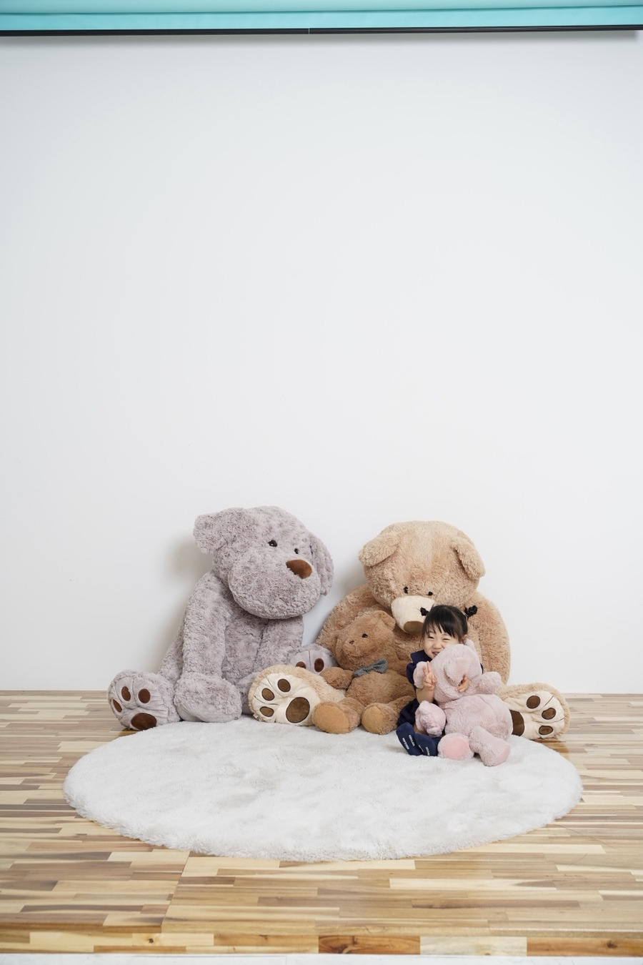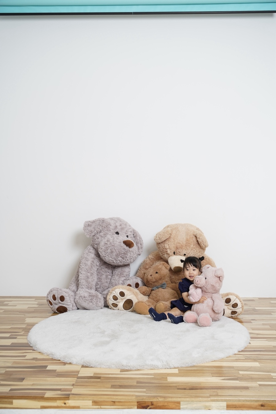 돼지인형고 곰인형을 안고 귀엽게 앉아 있어서 바로바로 찰칵!!