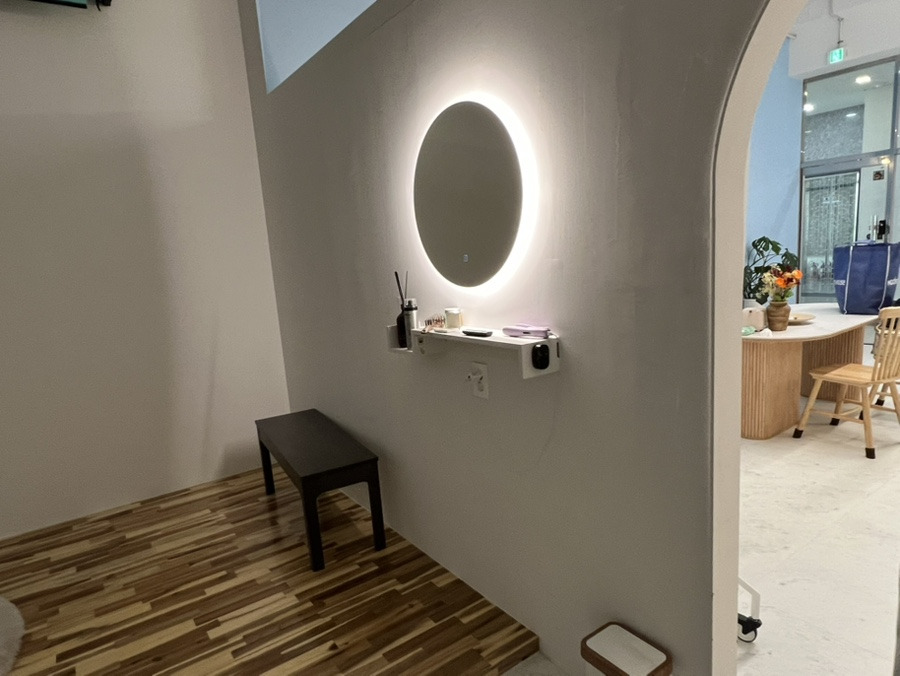 촬영하는 곳 바로 옆 벽에 거울이 있어서 촬영 중간중간 상태를 확인 할 수 있어요!