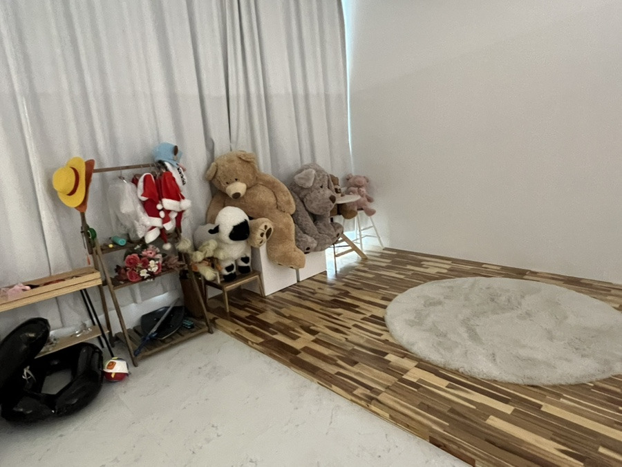 그리고 인형들 밑에는 아기 하이체어도 있고 셀프촬영할때 많이 사용하는 하얀색 단도 있구요~